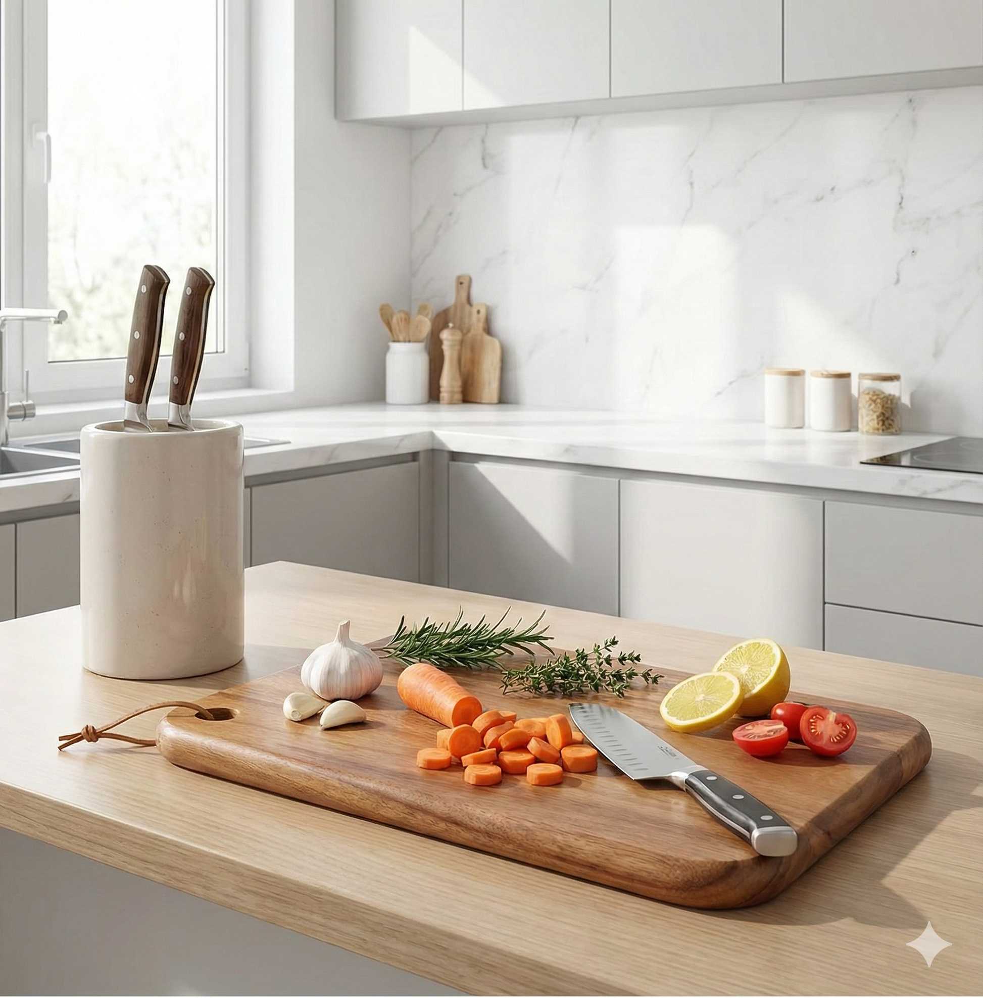 Acacia is naturally antibacterial, knife-friendly, and extremely durable, making it ideal for everyday kitchen use.